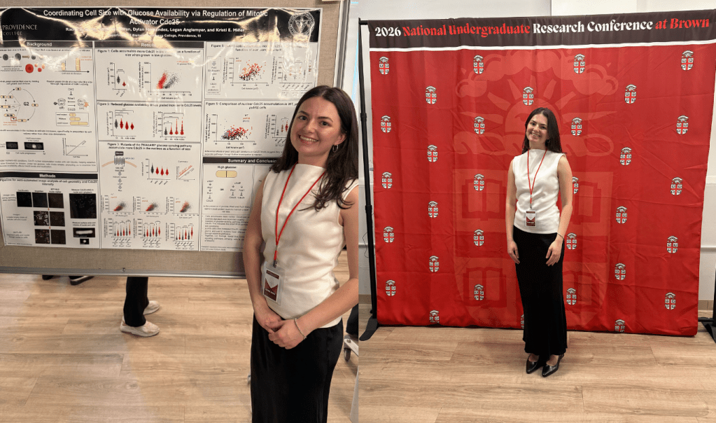 Elena is a Junior Biology major at Providence College and has been an integral part of the lab since Spring 2024. For her Goldwater application, she wrote a research proposal based on her project, “How cells stay the right size under changing environments.” Elena is the fourth Providence College student to receive this honor and the first from the Biology department — a truly outstanding achievement!
